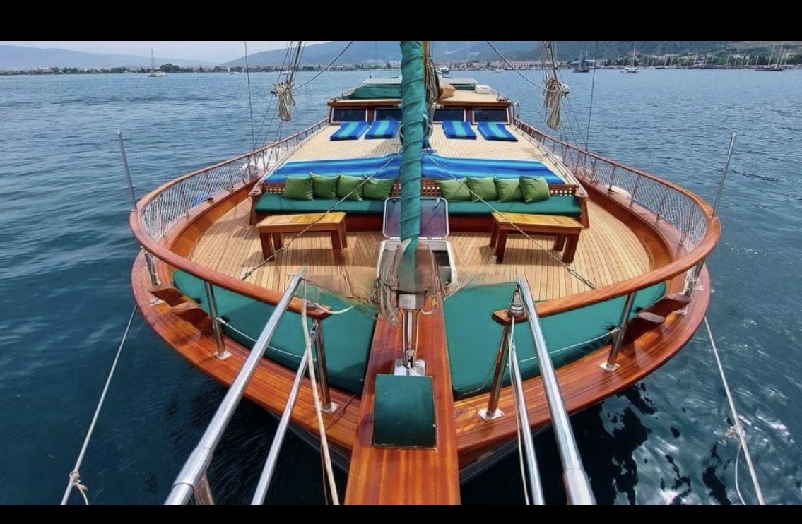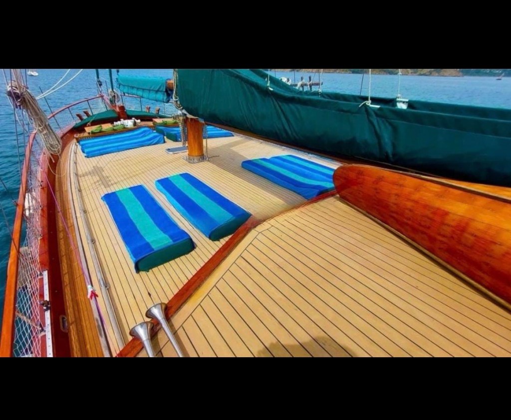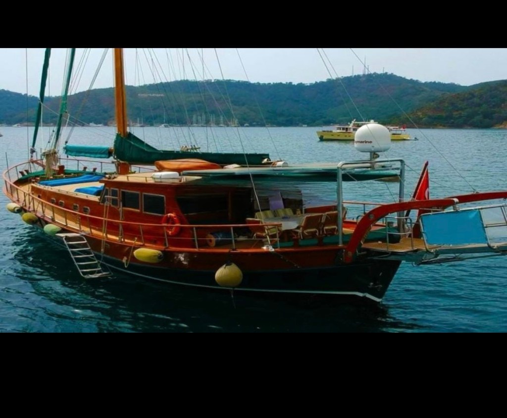 Mandalina yacht 20 mt with 3 cabins ,3 showers,toilet,she has aircondation in all cabins,she offers you with second saloon and tv room with satalite and dvd player ,music equipment.on the deck of front aiting area and sunbeds offers to you.on the back of the deck ,She has eating table for 6 person and sofa.in the first saloon offers you a bar for good coctails.